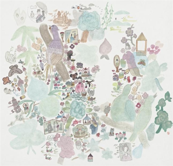 “中国文人画的散点透视,让我用东方人的方式看世界,而水墨轻灵,像一种吟诵,更接近生命的韵律。由此意象不受限制的延伸与累积,一生二,二生三,三生万物。”