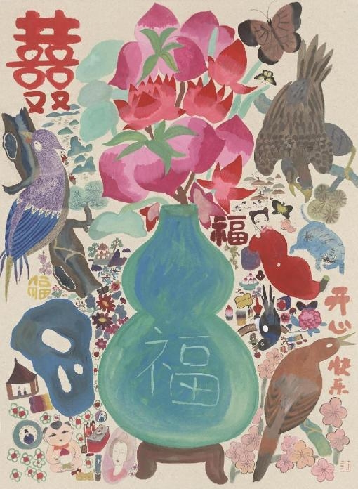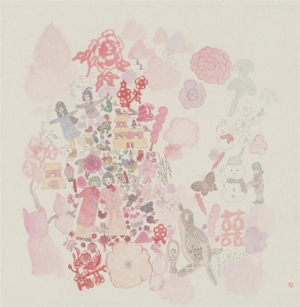 在艺术家王濛莎的作品中,有着多重平行宇宙:蜡笔小新、樱桃小丸子、葫芦娃、摩登女郎、江湖侠女,民俗图案、绣片纹样、民窑瓷画;文人画的手法、波普的色彩……看似风马牛不相及的元素,经由蒙太奇式的手法,被织成了一张文化巨网:东方与西方、传统与当代、现实与幻境相互交织,时空幻化、主观位移,还原着王濛莎精神世界的生成史,也构建起她独有的图像宇宙。