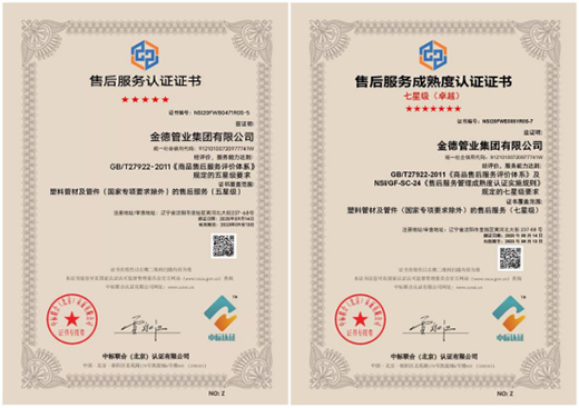 金德管业荣获售后服务“七星级”(卓越)认证证书!