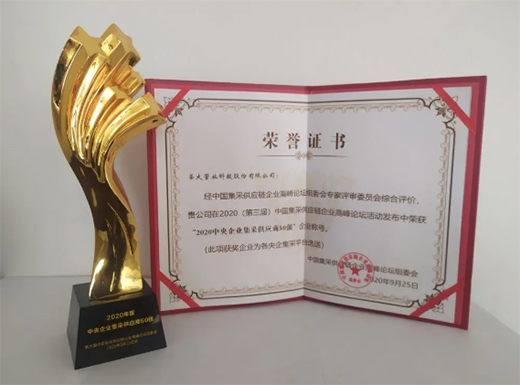 重磅!圣大管业荣膺“2020中央企业集采供应商50强”