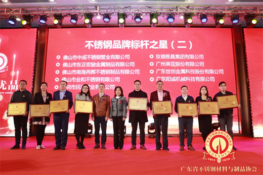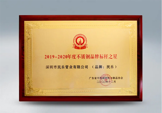 会议上还颁发了2019-2020年度不锈钢品牌之星牌匾,深圳市民乐管业有限公司荣获“不锈钢品牌标杆之星”荣誉称号。“品牌之星”是广东省不锈钢材料与制品协会打造"不锈优品·广东质造"区域品牌建设设立的,民乐管业荣获品牌标杆称号是协会及广大消费者对民乐管业不锈钢的质量与品牌的认可。