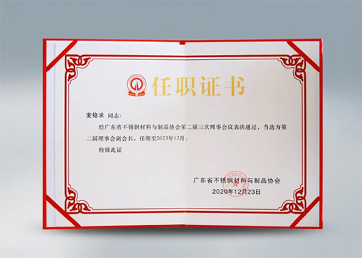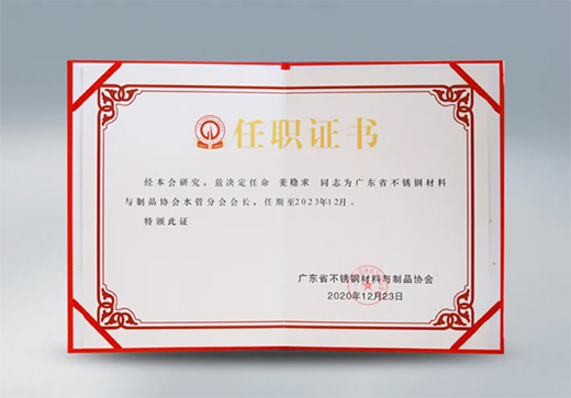 会上,深圳市民乐管业有限公司总经理麦稳求先生连续3年任命为广东省不锈钢材料与制品协会水管分会会长和第二届理事会副会长。