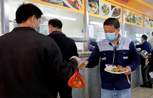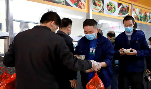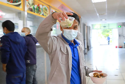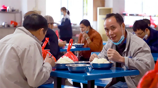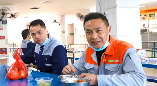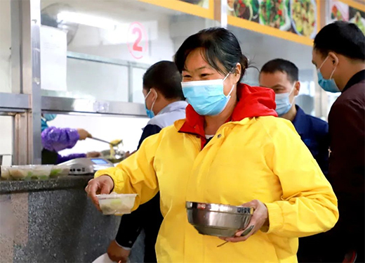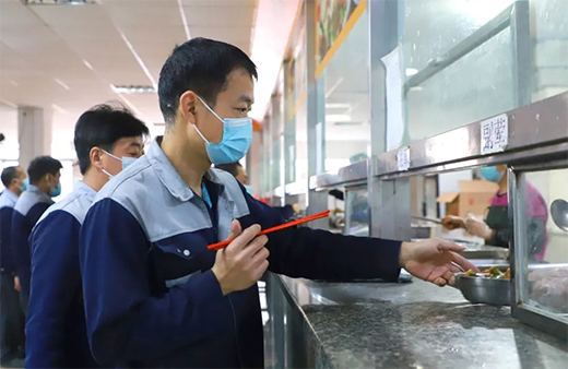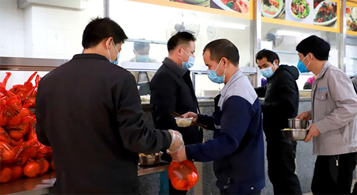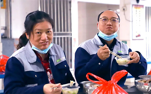 在职工食堂,大家一起吃着水饺共享佳节,让远离家乡的职工感受到家的温暖。