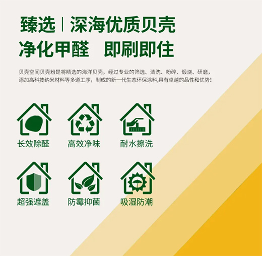 贝壳粉生态环保涂料作为壁才界的“后浪”之一,原料源自深海贝壳,通过科学技术手段将数量庞大的贝类资源回收再利用,“变废为宝”,成为人们追求绿色、健康居住空间必不可少的装饰材料。 贝壳粉生态环保涂料之所以走俏市场,备受青睐,除了与我国在推进生态文明建设中坚持资源循环利用政策导向完美契合外,更关键的是,其在减少装修污染的损害、改善室内居住环境方面,从源头环保、长效净化空气、高效吸附甲醛,这是人们在装修中最为担心也最为关心的三大“抓手”,纵观市场来看,这三大需求恰恰也是大多数传统材料所不能完全满足的。 政策导向,科技加持,独特“禀赋”,贝壳粉生态环保涂料正在绿色经济中“乘风破浪”。