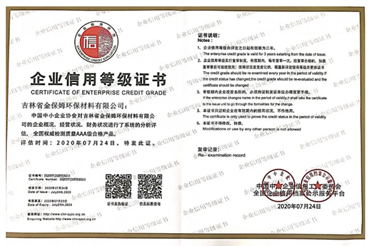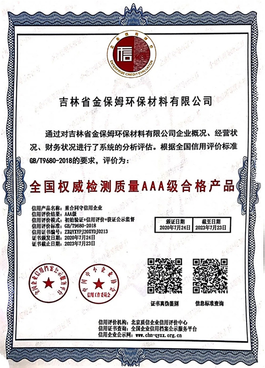 经过近两个多月的综合评定,吉林省金保姆环保材料有限公司,被评价为“重合同守信用企业”“全国权威检测质量AAA级合格产品”证书,正式下发文件。