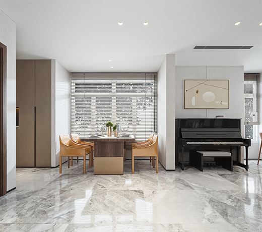 对于热爱生活、讲究生活质感的人而言,生活空间总是会在细节处融入更多品质的味道。大面积纯色贝壳粉涂料墙面的应用,让肌理感自带挺度,简单的质感自然舒展,既是优雅的姿态,亦是对精致生活的高格调追求。