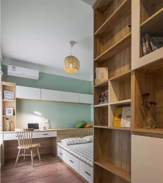 次卧仍然采用淡绿色进行装饰床头背景墙,