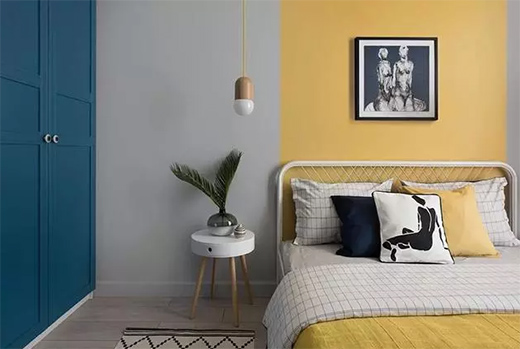 墙面可以采用左右拼色设计,房间里面同一面墙刷不同的颜色,这种颜色搭配会比较个性化。