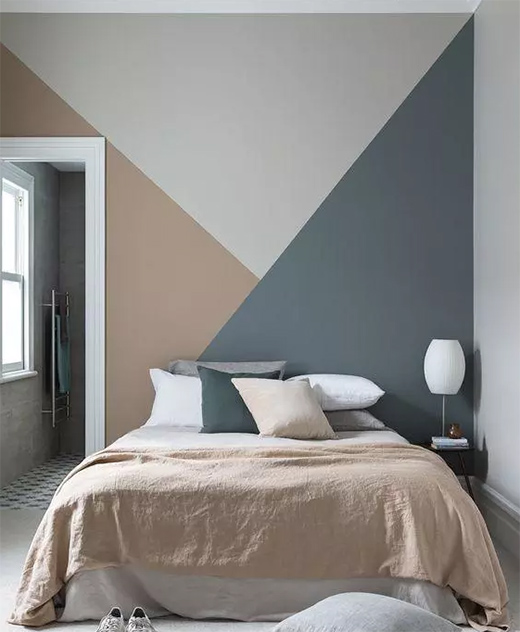 墙面几何拼色现在也很流行,可以用在电视背景墙、沙发背景墙、床头背景墙,还可以用于儿童房的墙面,多种颜色几何图形拼在一起,看起来比较有设计感。