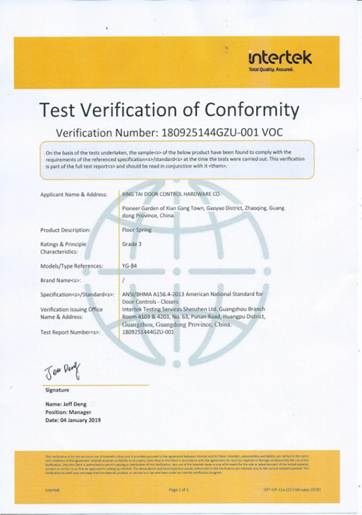 星泰企业主要生产:地弹簧、玻璃门夹、玻璃门拉手等系列。产品通过ISO9001质量管理体系及产品CE质量认证,被评为“中国名优产品”和“中国人民共和国建设部选用产品”,产品远销世界二十多个国家及地区。