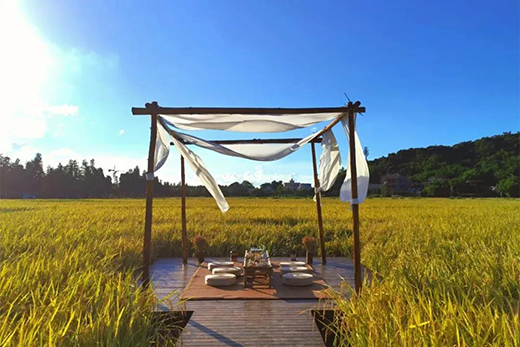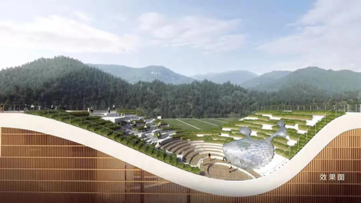 傍晚它还可以转换为星空影院,繁星点点,虫鸣声声,在光影流转中感受夜晚的怦然心动。 剧场周围密植着多种农作物,成为周围自然景观的延续。通过使用者和建筑的互动,增加全方位的体验感受,建立起自然、建筑和人的有机联系。