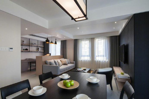 三室一厅改成两室一厅,做成开放式工作间,整体以灰,咖色为主调,线条简洁流畅又不失格调。