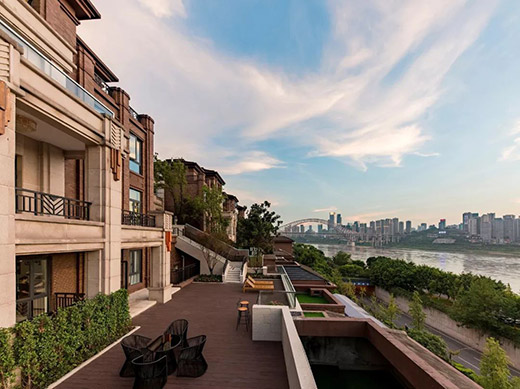 重庆中海峰墅项目位于南滨路弹子石商务CBD,东临近200亩的中央生态公园,南接总部经济区,与江北嘴和朝天门广场隔江相望,西临长江,临江面超过1600米,峰墅的整体定位是打造“城市中心的豪宅”。本案空间则以中式内在的贵雅连结传统文人雅士的自在清通,赋予现代精英贵胄更为高蹈的生命体验。