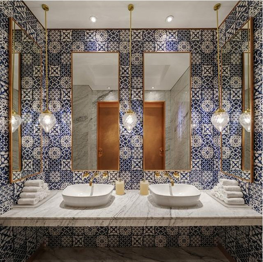 除了纯色的瓷砖,花砖也是其中的一大类。简约的颜色、繁复的纹样在有规律的重复着,丰富但不杂乱,带来一丝异域风情。
