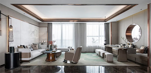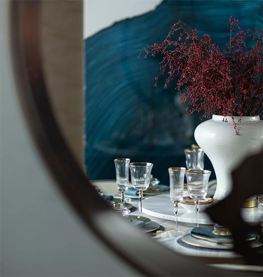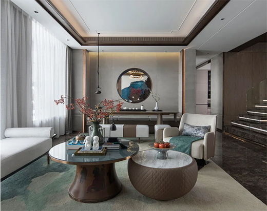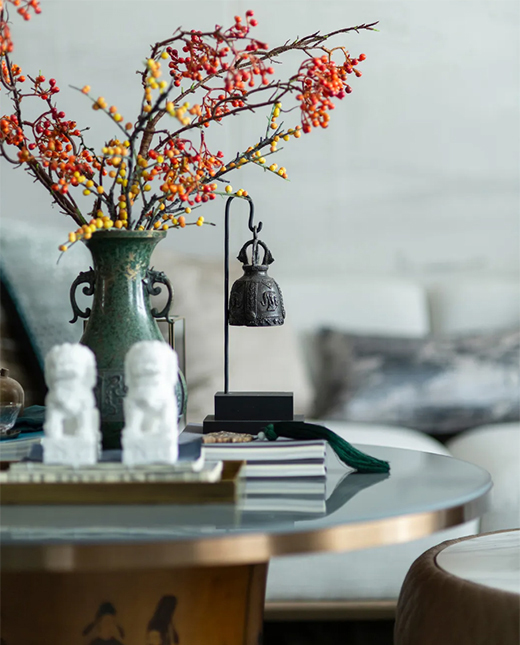设计师于醇香古韵间点染出一幅清新淡雅的温婉画境,以当代艺术笔触传古承今,酝酿极具东方气韵的澹雅画境。
