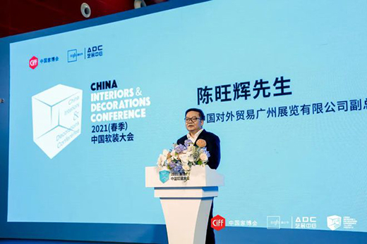 中国对外贸易广州展览有限公司副总经理陈旺辉先生提到2021年(春季)中国软装大会,是家博会与艺展中心精心打造的设计盛事之一,目的是共同为当前中国家居设计产业的升级发展出谋划策。