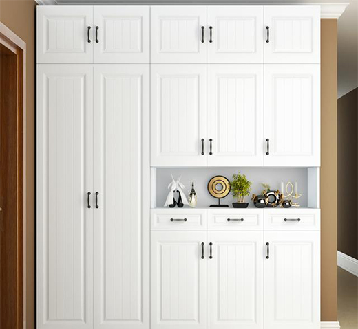 3、玄关鞋柜底部留空15—20公分,方便放常穿的鞋子,不用频繁开启柜门,延伸鞋柜使用寿命,大柜也不显压抑,扫地机器人也能进入清洁,或预留电源在底部充电。