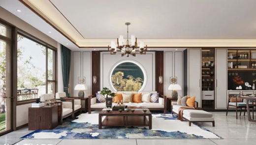 中式客厅的布置,处处都是文化的底蕴体现,顶部的吊灯为这个空间带来了明亮的氛围感,实木的沙发茶几,保障生活的舒适性。