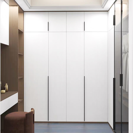 极简衣柜,它的特点是“化繁为简”,把复杂往简单化,线条流畅,时尚感十足,适合搭配多种装修风格,属于百搭类。它看起来沉稳又低调,实际上这才是生活品质的最高端,是心之所往,是简单的幸福感。