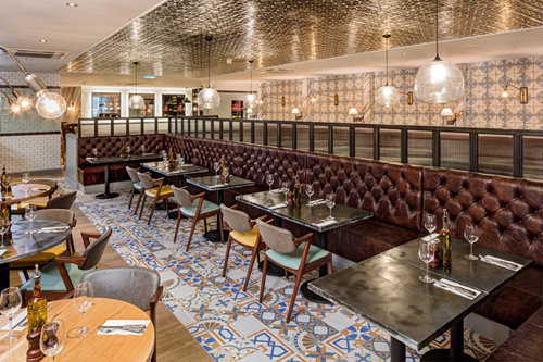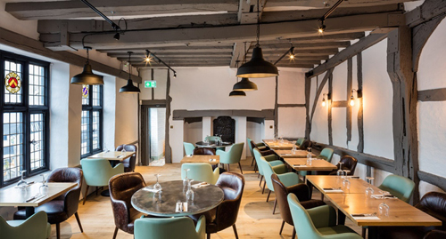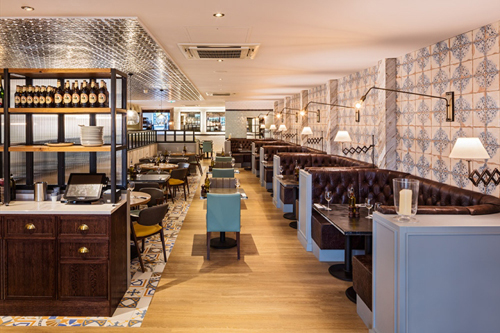 餐厅的设计任务是在现有的复杂建筑内融合品牌精神,同时保留一些关键的建筑元素。