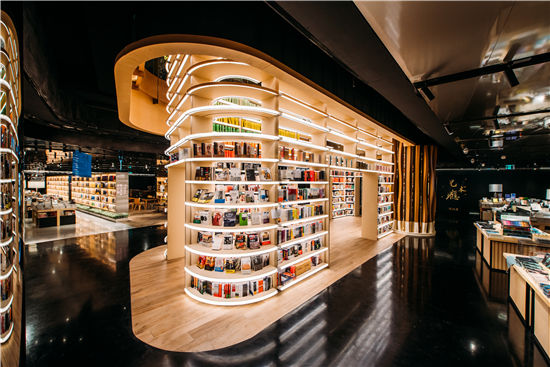 设计团队大胆使用黑色作为主色调,黑色的深沉基调配以木质暗金,呈现出黑金的视觉效果,不仅可以在设计上凸显产品与主题区域,进一步强调峻佳设计“Design Beyond Eyes”的体验式设计理念,同时书店给人印象是无限智慧和无穷的探索,黑色与这隐喻正相配合。