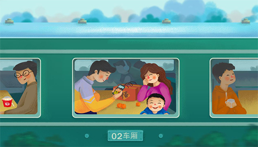 “各位旅客你们好,‘家乡站’到了,请下车的乘客带好随身物品与奥川手机稳定器,记录美好时刻,保存无限念想。在此,奥川祝全国人们鼠年大吉、生活美满、心想事成!”