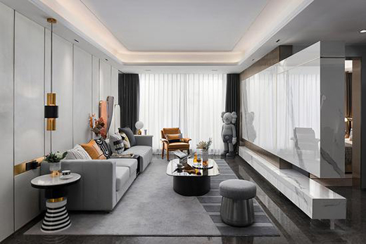 时尚简约是现代年轻一代最追从的风格之一,设计师此次透过空间的适度陈设诠释纯粹、自然、简约而有序的设计秩序,留白中点缀艺术,使得相对的空间格局错落有致,弥补狭长客厅的质感缺陷。在平静且克制的语境中,注入恰到好处的美学情趣。