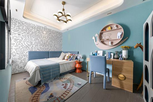 童趣空间着重在颜色及小艺术品的处理上,设计师选择讨巧的方式营造“小小国度”的主题。结合摆式造型及家具的应用提高使用空间的开畅,在自然舒适的质感中彰显爱艺术、好奇与无限想象力的小主人特性。