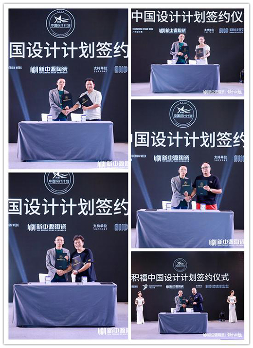 启动礼现场,新中源陶瓷营销总经理陈勤显代表新中源陶瓷总部与长沙凡兮设计师事务所设计师、2017年中国设计星王星凯、安杰斯装饰设计合伙人、2019中国设计星黄杰、本舍设计创始人、2015中国设计星熊文质先生远东建设设计总监刘珍珍、湘西澜庭设计创始人张波分别签订了《积福中国设计计划》。