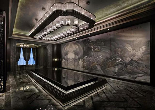此空间中代表着东西方文化设计元素的应用,在视觉上丰富而不凌乱,每个角度都是一道风景。设计师以驾驭多元文化的设计功力和顶级工艺,不动声色地传达对奢华的态度。