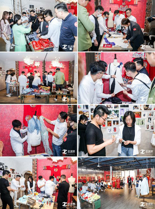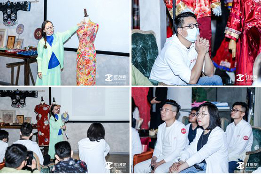 设计师们的第一站就来到了坐落于创造聚集地——798的茧迹工作室。琳琅满目的高定礼服,引得参观设计师们赞叹出声。李呐老师从传统元素中提取灵感,将其巧妙地融合到服饰设计中,创造符合当下审美的创意作品。而礼服繁复的花纹、古典的样式,创新的形式则更凸显了庄重、大气的中式仪式感,让设计师感受到独具魅力的东方韵味。