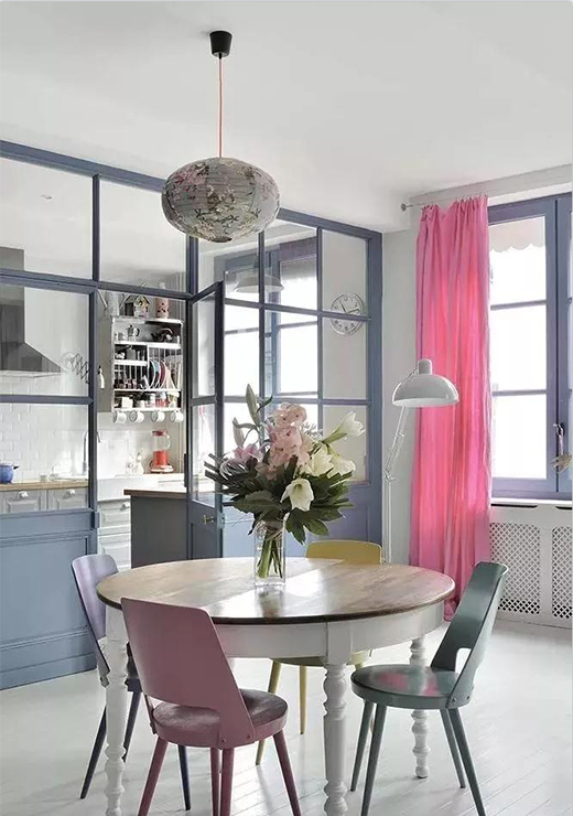 隔断墙并非只是一整面墙,半通透型的隔断墙,既可以完成隔断作用,又具有装饰效果,两种功能属性的隔断,非常招人喜欢。