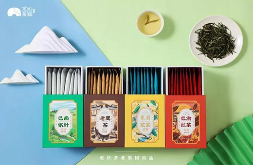 定心茶园四季茶礼盒,包含4款具有重庆特色的茶叶产品︰