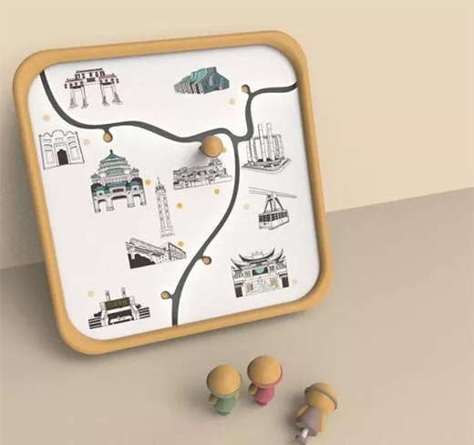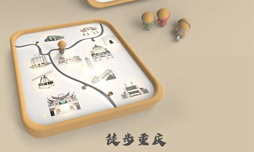 这是一款文创重庆景点互动地图小玩具。通过小地图,让游客可以更简单更清楚的知道各个景点之间对应的位置和方位,并可以通过移动小景点装置,来触发景点中的标志性建筑或事物场景,让用户边玩边加深对于重庆地区地区的印象,还可以通过玩耍熟知重庆各景点方位,使其游玩起来更加“得心应手”。