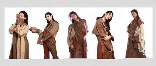 以巴渝文化中的顺应自然和勇往直前为设计理念,在设计中使用解构手法,使西装元素运用在现代女装设计中,设计出适合日常穿着的服装,整体设计偏向成衣化,使设计既实用又有创新性。同时通过在面料的印花上选择与洪崖洞夜景相似的印花,来体现洪崖洞夜景的灯光明明灭灭之感。
