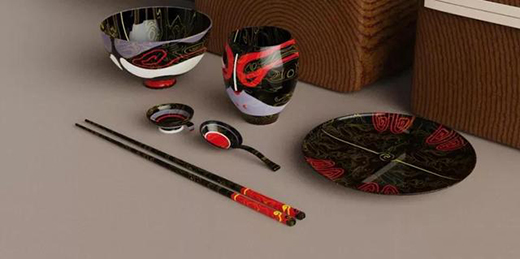 该火锅食器的设计使用了浓烈的黑红搭配色,与著名国宝级文物“太阳神鸟”所处的年代的宫廷器物常用色相照应,黑红色彩突出,不仅体现了高贵庄严的皇家气质,也同时具备了抓人眼球的外观。而且黑红两种色彩也是川剧脸谱的常用色,独具川渝特色。