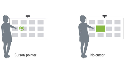 去掉指针。触摸屏上也不需要指针。去掉指针这种反馈形式,提供一种替代方案。让图片和物体“弹出来”,立即响应用户的手部运动,不需要任何指针。