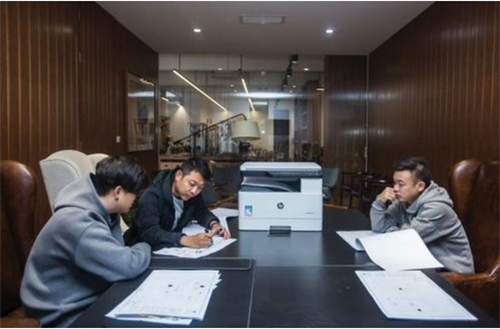 日常工作过程中,大家要经常把图纸打印出来讨论,细化,有的人会选择在工具台前思考。更多时候大家还是在连椅子都很舒服的会议室,边讨论边修改。