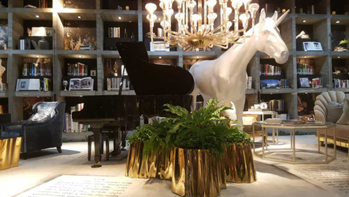 在乐乐书屋,没有一把椅子是重复的,它们造型各异,正如人的个体独特性一般。座椅与书桌的摆放自由随意,不会令人感到拘谨与严肃。在书屋走动,会发现地面刻有书页的样式,空间持续不断地向人们传递着文化感与艺术感。而白色骏马的设计,无疑增添了一抹童趣与活力,无形中拉近了人与空间的距离。