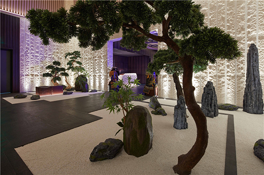 进而为凸显质朴的自然属性,接待处以天然石作为接待台,在日本古代的平民客厅中,以『围炉里』为主光源,燃烧不熄, 故有生生不息之意。