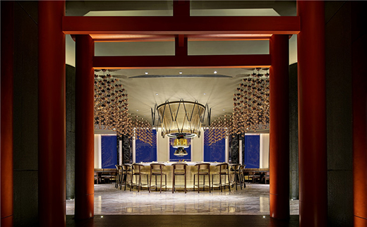 北门以靖国鸟建造为蓝本,以朱红色染料为主色,有除魔除厄运的含义。居客人在经过此鸟居空间时,就好像到达一个令人期待的酒吧区域。