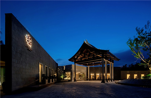 酒店地理环境优越,整体建筑群传承了极具岭南特色的风韵。空间动线设计犹如寻探桃花源,初到此境不禁令人生疑:坐落海边的酒店从何见海?直到进入酒店,依次穿过门廊、玄关和接待处后,一片湛蓝的大海如同画卷一般呈现于眼前,豁而开朗又趣味横生。而设计师设置的趣味在此才刚刚开始。