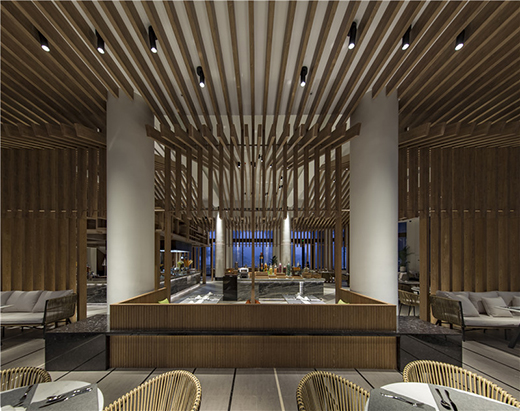 在悦椿酒店,KCA延续了酒店精神的脉络,在特色餐厅的室内设计上以传统的泰式文化作为空间导索,亲自设计灯饰和家具以求营造泰国皇室的气派,供旅居者体验。对于悦椿酒店的全日餐厅,KCA提取传统岭南建筑群的结构符号,通过新旧不同的建筑几何手法,让人们从另一个更有趣的角度重新认识岭南文化的精髓。