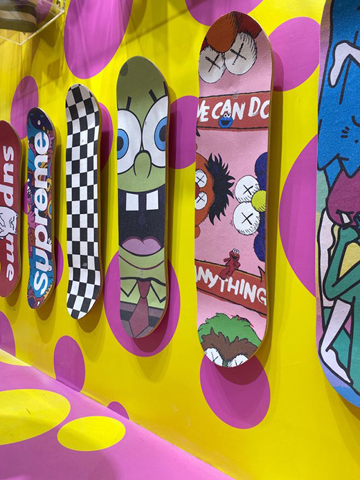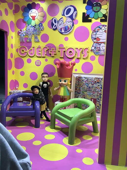 除了“BUBBLE CHAIR”以外,JOE还将自己喜爱的动漫元素融入到整体空间设计之中,通过村上隆作品,铁臂阿童木手办等卡通作品,营造出各种色彩的碰撞与混搭,在呼应“BUBBLE CHAIR”的同时,也带来一种视觉上的强烈冲击感,吸引到众多专业观众的参观与驻足。