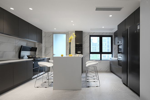 开放式厨房:将客厅、厨房、餐厅连成一体,让公共空间相互联系;使空间增大,视野开阔;让生活更便利;情感交流更充分;让家更有温度!