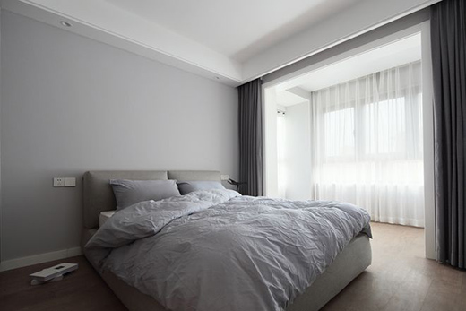 主卧:走进灰蓝浸染着的卧室,有一种夏日的气息,就像浅浅的海水拂过沙滩,像清凉的微风吹过耳畔,心绪也变得清澈明净。