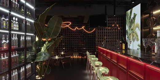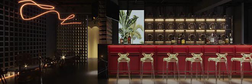 八只鹦鹉的名字灵感源自非洲的大型鹦鹉,所以大厅氛围向往的是非洲原始的热情和自然景观。吧台这一抹热情似火的红色,直接点燃了现场气氛。
