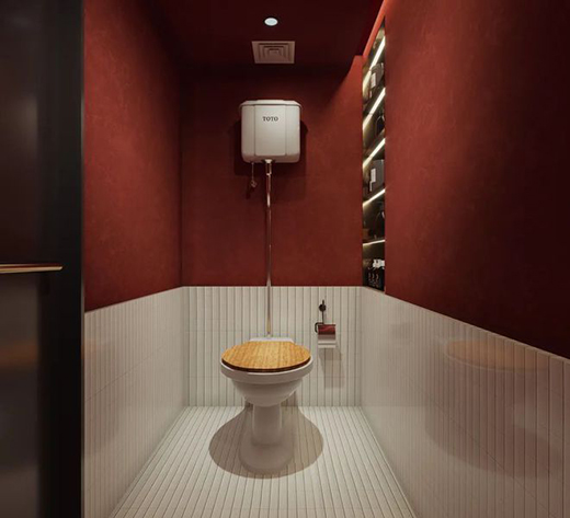 进到卫生间,很难不被眼前这个原始的马桶吸引:马桶的开关是抽绳的,轻轻一拽,冲水的声音立刻将人带回几十年前的筒子楼;木质马桶盖是年代剧里的标准配置,如今已很难见到了。