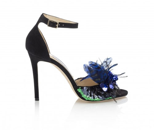 这个充满创意的环境中孕育了一个新系列的诞生,把华丽的手工艺、大胆的多种形态与浓艳的色彩和装饰完美融合—— 细高鞋跟的加宽,在其自然散发出来的性感中增添了几分稳重的感官享受;鞋靴上的切割,让人联想起飞行中向后弯曲的羽毛形状;手绣的鸢尾花瓣饰缝,为雕塑凉鞋锦上添花;有色有机玻璃镶件和镶板与多层金属亮片互相结合,向大自然的杰作致敬。