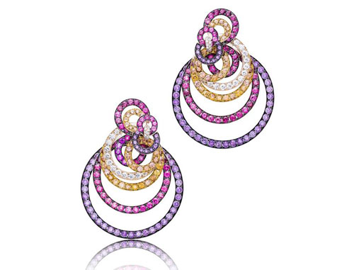 镶122颗尖晶石、78颗橙色蓝宝石、 98颗紫水晶及58颗白钻
